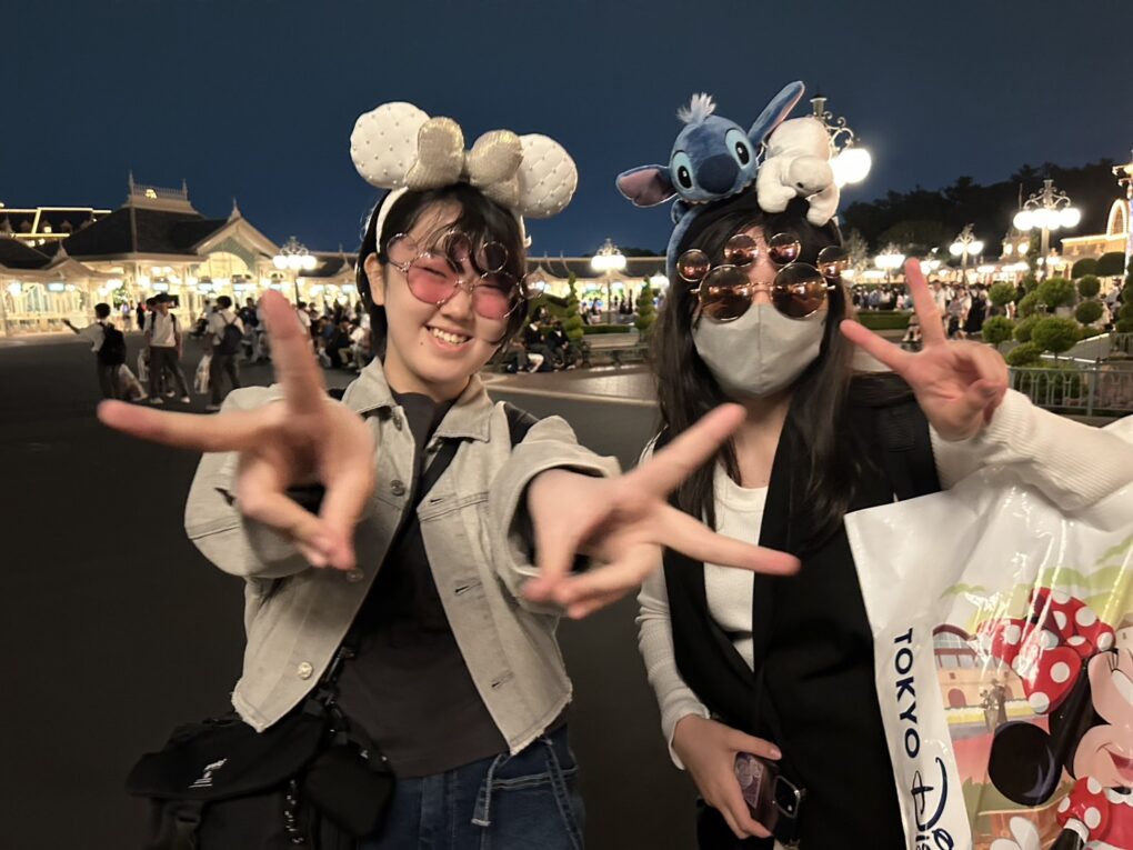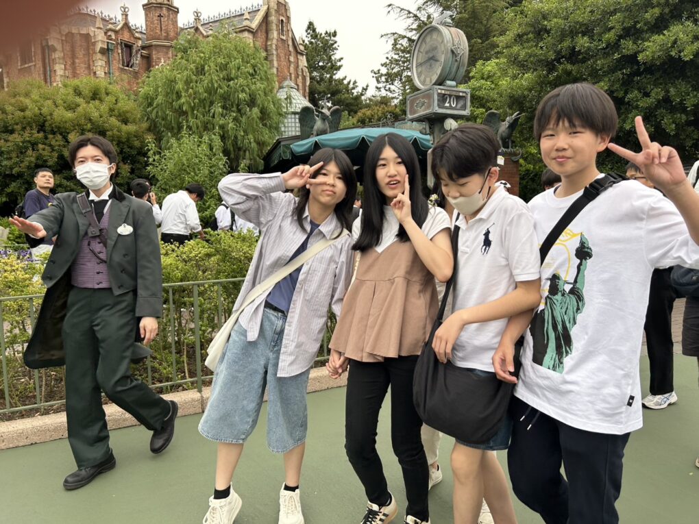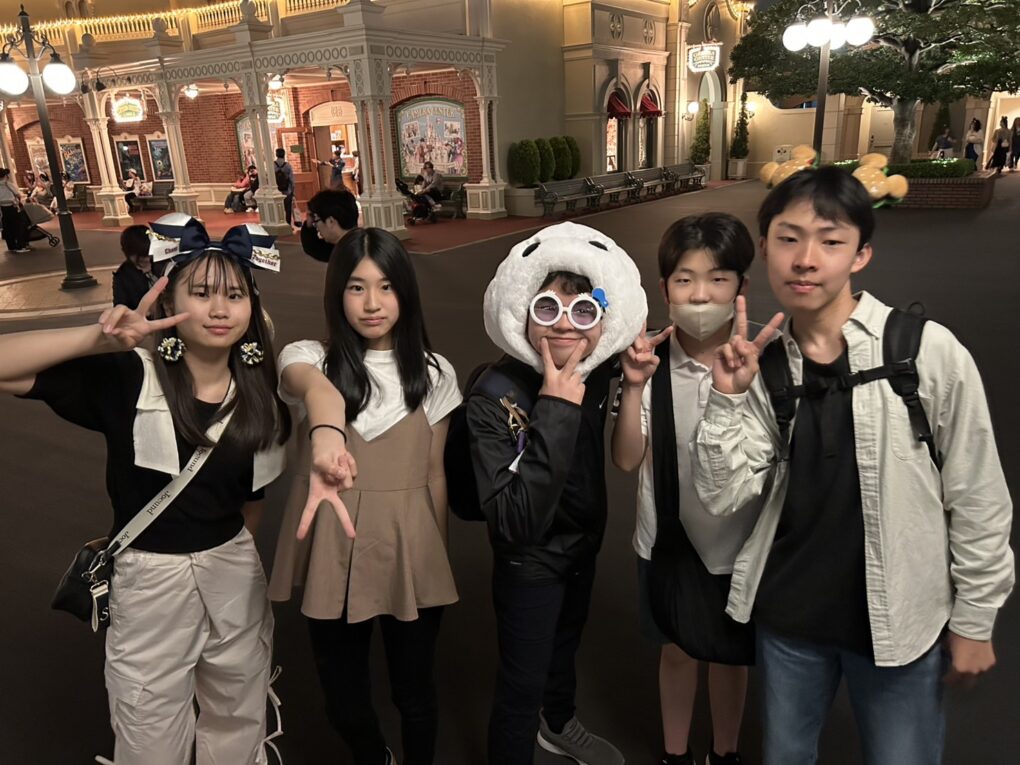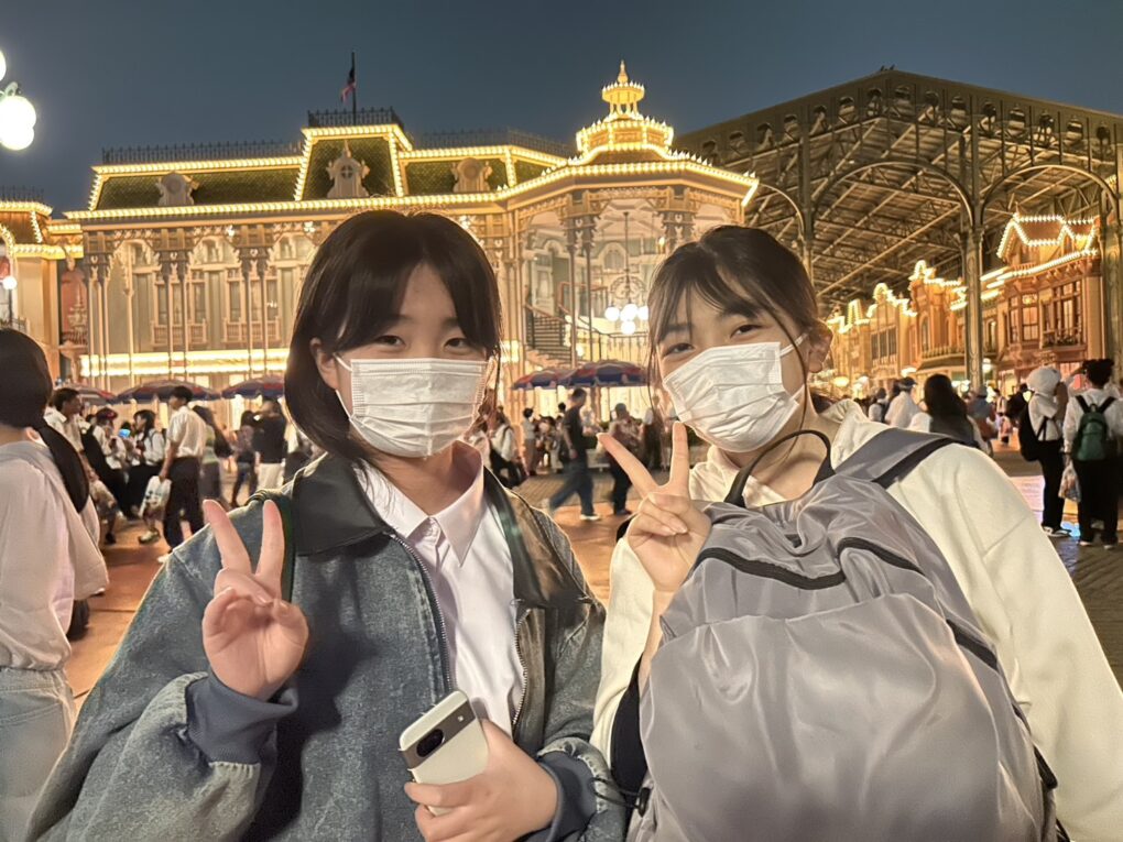 午後は、みんなが楽しみにしていた東京ディズニーランド!おそろいのキャップやカチューシャで写真を撮ったり、アトラクションでは大きな声で盛り上がったり、思い出がどんどん増えていきました。お気に入りのキャラクターのぬいぐるみを買って、友達と見せ合っている姿も見られて、とてもほほえましかったです。心に残る一日になりました。