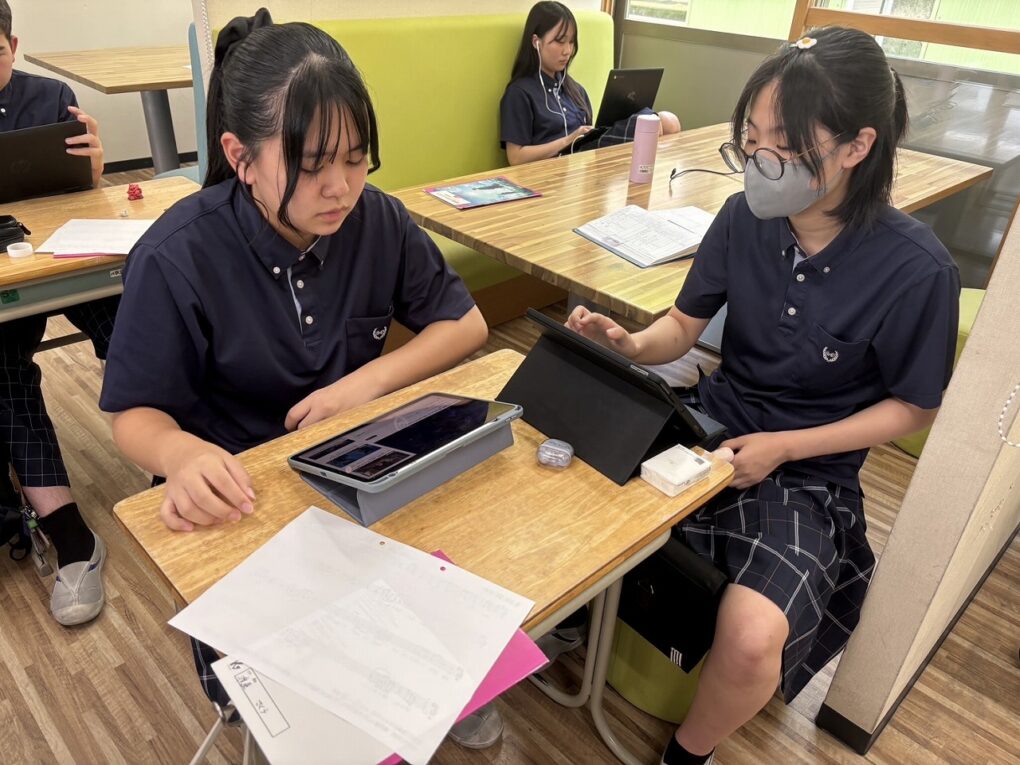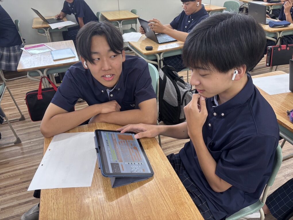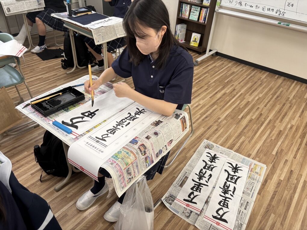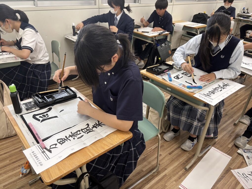 3年生は、前半の時間に書道に取り組みました。今回は「行書」の練習に挑戦。筆の流れや文字のつながりを意識しながら、一画一画に集中して取り組みました。静かな空気の中で、落ち着いて書と向き合う時間となりました。後半は、「カトカトーン」という音楽Webアプリを使って作曲体験を行いました。生徒たちは、音の高さやリズムを試しながら、自分たちでメロディを作り上げました。音を並べて試行錯誤したり、意見を出し合いながら完成させたりと、楽しみながら音楽づくりに向き合っていました。