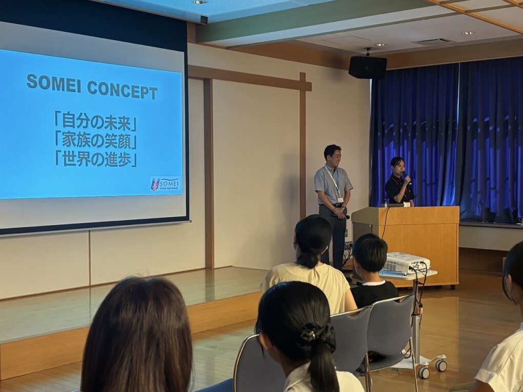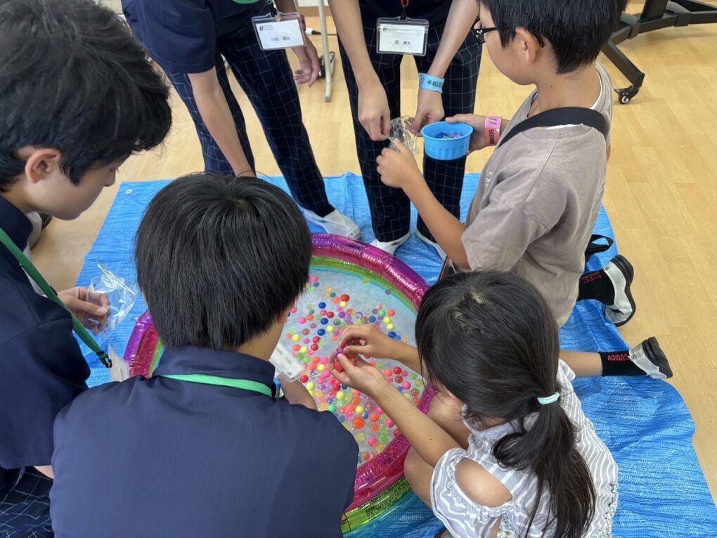 全体会では、校長先生・生徒会長の挨拶に続き、在校生による学校説明が行われました。その後、今回のメイン企画である「真夏のサイエンスショー&ワークショップ」と題した理科の授業を体験していただきました。液体窒素を使った実験に、参加した児童のみなさんは釘付けになっていました。「学校クイズラリー」では、在校生や教員が出題するクイズを通して蒼明学院中等部のことを知っていただきました。閉会後にはミニ縁日で盛り上がりました。暑い中ご参加くださったみなさま、誠にありがとうございました。