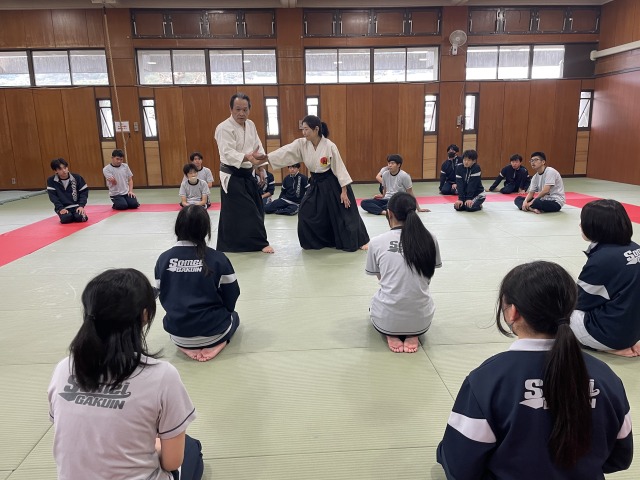 生徒のふりかえりからは、『合気道は戦いではなく、相手と協力することが大切だと知った』『礼儀を重んじて、相手に技をかけさせてもらうことを意識してできた』『受身を取ってくれる相手に感謝の気持ちを込めてお辞儀をした』といった声が聞かれ、技術だけではなく精神面でも大きな成長となったようです。