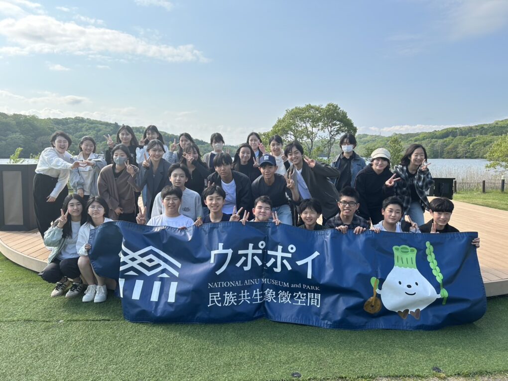 1日目の今日は、広島空港から新千歳空港へ向かいました。最初に訪れたウポポイでは、社会の授業で学習したアイヌ民族の伝統芸能を実際に目にすることができました。