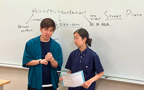 講座では、「問いを立てる→仮説を立てる→検証する」という流れを軸に学びを展開。たとえば、近所の神社を訪れながら、「鳥居の真ん中を歩いてはいけないのはなぜ?」「階段で息が切れるのはなぜ?」といった素朴な疑問を出発点に、情報を集め、考察し、検証します。身近な事象に問いを持つことから始める学びは、生徒たちの思考を刺激し、探究心を引き出します。
