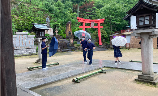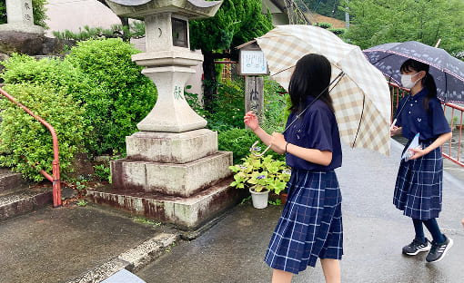 講座では、「問いを立てる→仮説を立てる→検証する」という流れを軸に学びを展開。たとえば、近所の神社を訪れながら、「鳥居の真ん中を歩いてはいけないのはなぜ?」「階段で息が切れるのはなぜ?」といった素朴な疑問を出発点に、情報を集め、考察し、検証します。身近な事象に問いを持つことから始める学びは、生徒たちの思考を刺激し、探究心を引き出します。