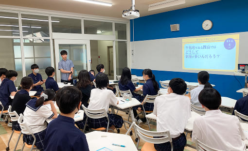 蒼明学院中等部では、2年生を対象に「アカデミックマインド養成講座」を実施しています。講師を務めるのは、教育・出版・メディア事業を展開する株式会社カルぺ・ディエムに所属する東大生や東大の卒業生たち。自らの経験をもとに、中学生の視点に立って講座を企画・運営しています。