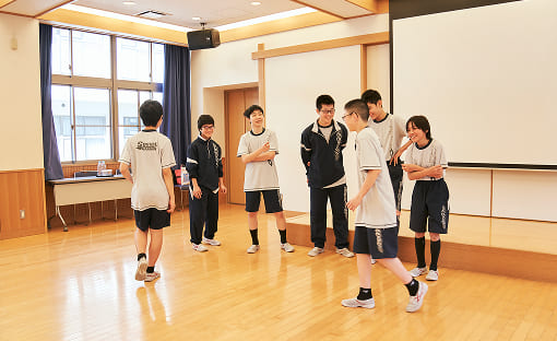 蒼明学院中等部の「ドラマ教育」は、演劇的な手法を通じて、表現力やコミュニケーション力を自然に育てる新しい学びです。即興劇やワークショップを楽しみながら、「自分らしさ」や「社会性」を身につけていく本プログラムは、2024年度よりスタートしました。仲間と共に感じ、伝え、共感し合うことで、人と人とのつながりを体感し、生きる力の土台を育てていきます。