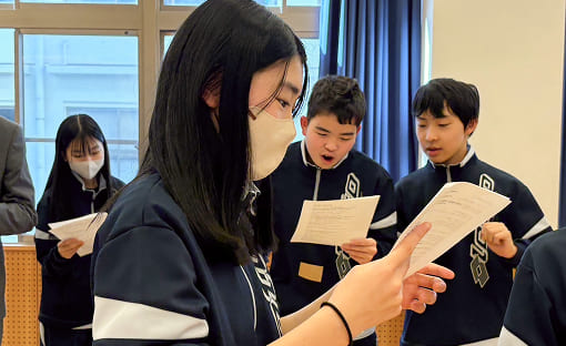 蒼明学院中等部では、「世界で通用する力を育てる」という教育目標のもと、知識の習得だけでなく、これからの社会に求められる表現力やコミュニケーション力、協働する力の育成にも力を入れています。2024年度より始まった「ドラマ教育」はその一つ。